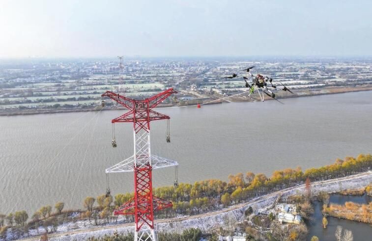 “我们在作业前进行了多次演练,测试无人机续航、载重、抗风、飞行高度等条件,确保了施工当天无人机正常作业。”江苏省送变电公司输电二分公司项目经理徐仲征介绍。施工前,相关水域采取航道封锁措施。