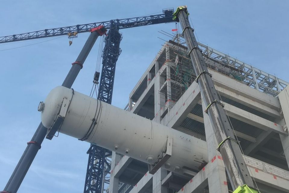 本网讯 1月10日,新疆昌吉英格玛电厂工程项目部1号机组除氧器顺利就位,为后续的管道安装工作创造了良好的条件。