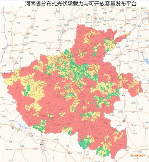 根据承载力,将地区分为绿色、黄色、红色区域,并需要配置不同的储能规模。