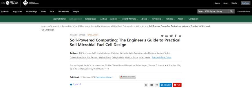 在测试中,这种设计在不同的土壤湿度水平下表现一致,从完全浸没在水中到“有些干燥”的土壤(含水量仅为 41%)。平均而言,它所产生的电量是其板载湿度和触摸检测系统运行所需电量的68倍,并能通过微型天线将数据传输到附近的基站。