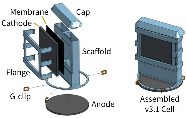 此外,在电极的整个长度上都有一个通气间隙,顶部的保护盖可以防止灰尘和碎屑掉入,切断阴极与氧气的接触。阴极的一部分还涂有防水材料,这样当洪水泛滥时,仍有一部分疏水性阴极与氧气接触,以保持燃料电池的运行。