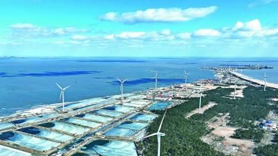 近年来,山东省荣成市依托沿海丰富的风能资源,建设多处沿海、海岛风电项目,助力渔业养殖快速发展。图为1月24日,荣成市东褚岛风力发电场。王福东摄/光明图片