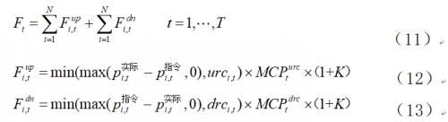 其中:为t时段回收及考核费用, 、分别为上、下爬坡回收及考核费用, 、分别为机组i在t时段的实际出力和计划出力,为考核系数(暂定为1.0)。