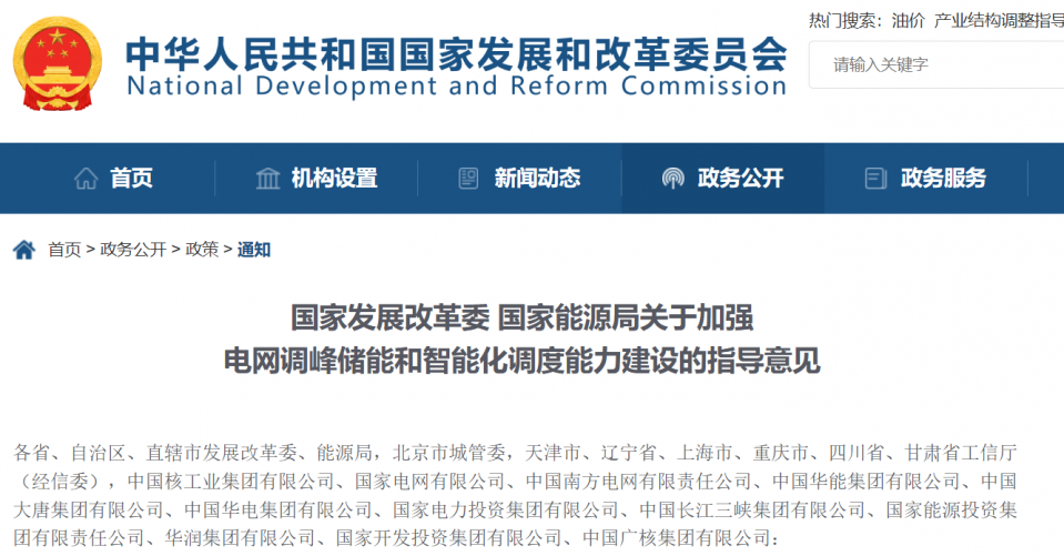 2月27日,国家发改委、国家能源局联合发布《关于加强电网调峰储能和智能化调度能力建设的指导意见》。