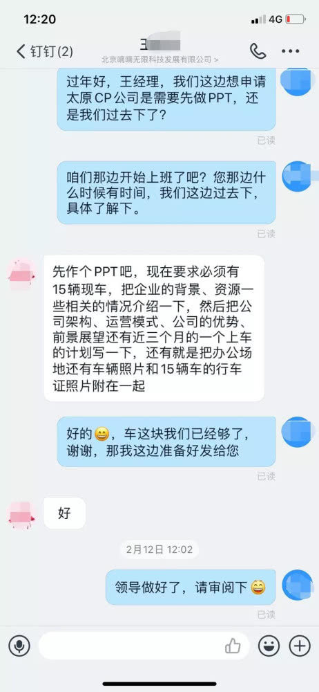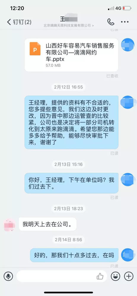 (好车容易公司向太原滴滴分公司提出合作申请,但一直未收到回复,图片由好车容易公司提供)