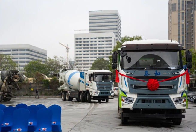 本次活动“氢燃料搅拌车”正式投入运行,这也标志着传统行业在氢能赋能下,正探索出一条新的节能减排之路。
