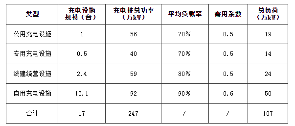 根据2024—2025年各类充电设施需求总量预测数据,按照不同类型充电桩的功率和充电桩同时率进行分析,计算新增充电基础设施的用电负荷预测值。