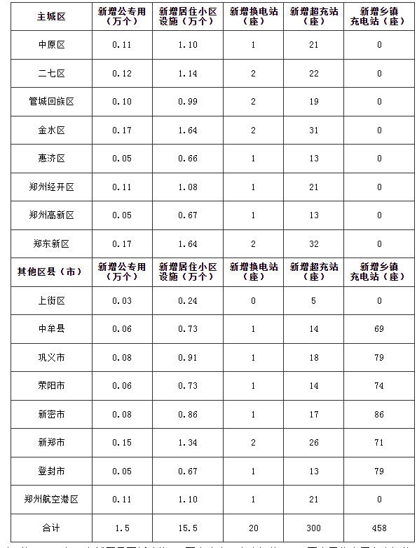 郑州市主城区已基本完成公共充电站和专用充电站布局,下一步应重点推进居住小区充电设施建设,优化公共充电站布局,加快公路干线充电设施建设,因需补充公交、物流等公共服务领域充电设施建设。