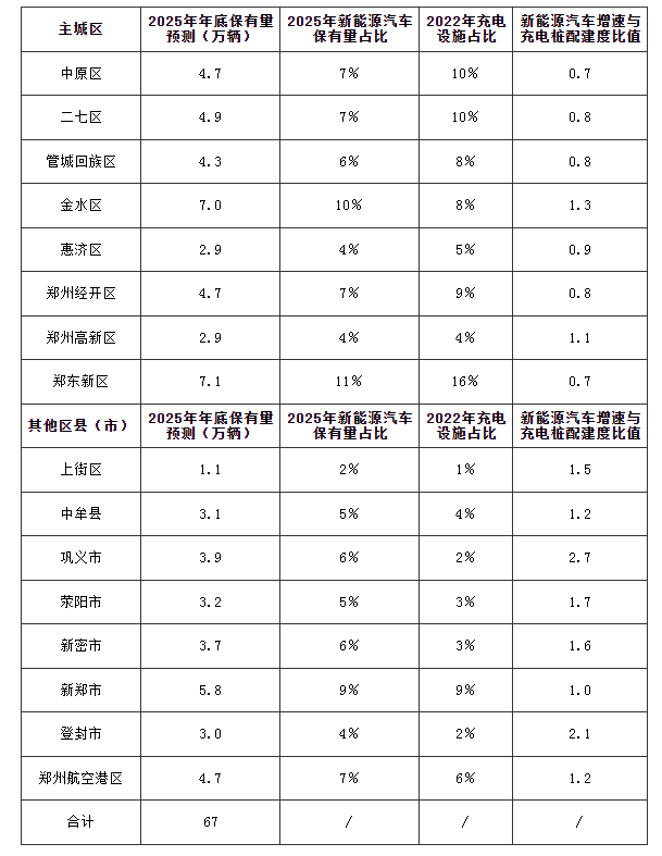 其中新能源汽车方面指出,截至2025年末,郑州全市将新建公用充电设施1万个,专用充电设施0.5万个,居住小区充电设施15.5万个,换电站20座,超级充电站300座,乡镇地区充电站458座,形成城市核心区充电服务半径小于1公里的公共充换电网络,全力保障郑州市67万辆电动汽车安全出行。预计2035年郑州市新能源汽车保有量将达到270万辆,充换电设施规模将达到110万个,形成绿色环保、低碳高效的交通服务体系。