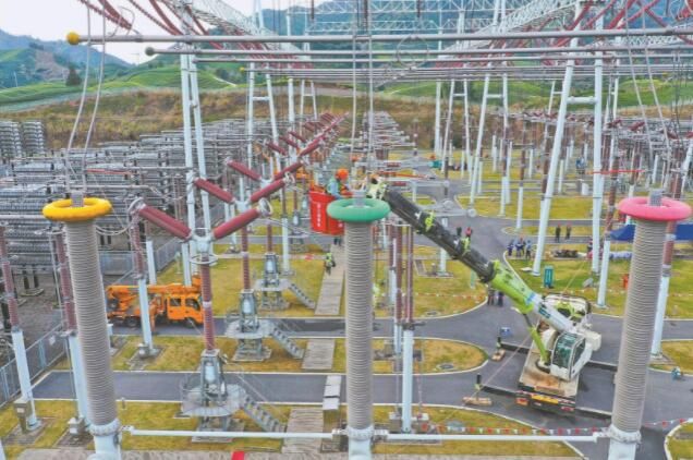 晨雾渐散,隐藏在万亩茶园里科技感十足的金华换流站映入眼帘,来自32家单位身着各色马甲的检修人员穿行于站内设备区。