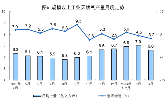 4月份,规模以上工业(以下简称规上工业)原煤、原油、天然气、电力生产总体平稳。