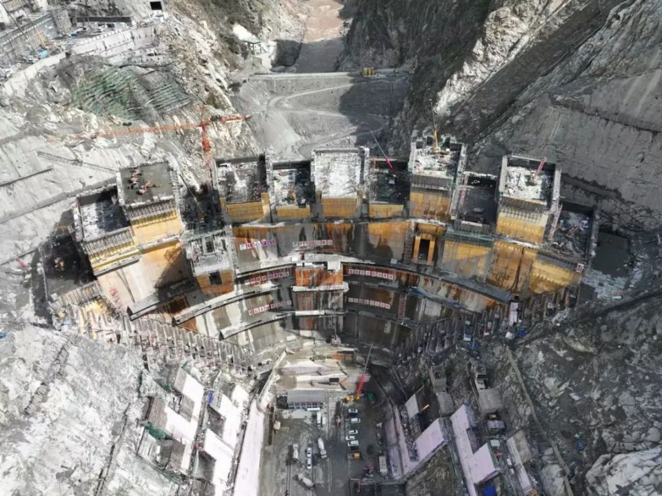 大坝为混凝土双曲拱坝,混凝土浇筑总量约为251万立方米,已完成总浇筑量的39.84%,为2024年年度目标110万立方米保质保量完成奠定了坚实基础。
