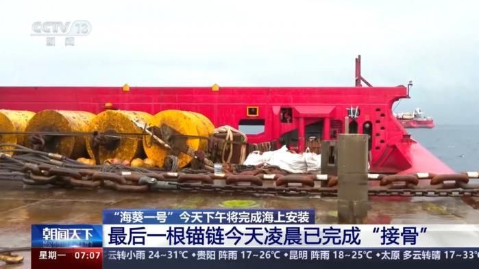 6月10日凌晨,作业船291上顺利完成了水下锚链与“海葵一号”牵引链的对接工作,这标志着12根锚链中的最后一根已成功完成“接骨”任务。按照既定计划,6月10日下午,“海葵一号”将开展这12根锚链的张紧与固定作业,从而圆满完成此次海上安装任务。