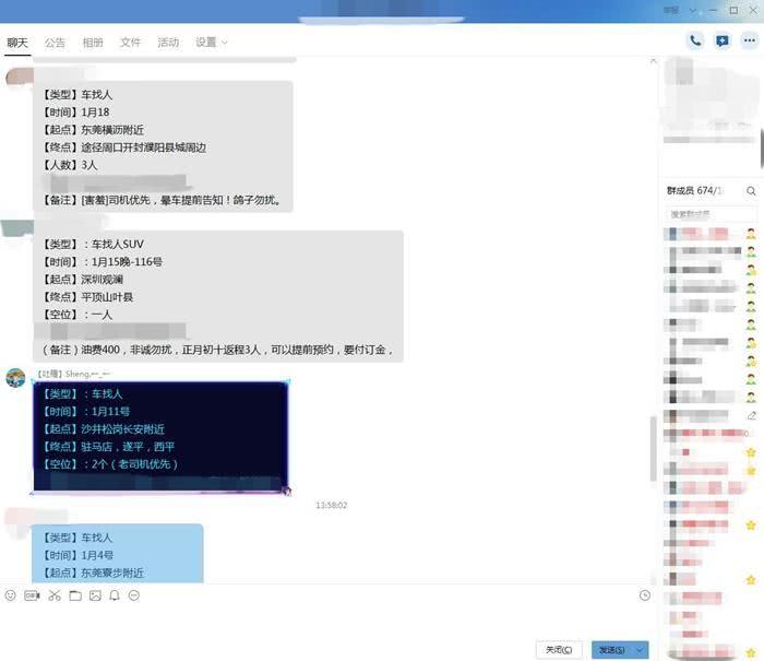 计划春节从广东东莞回河南信阳老家的陈先生就在某个群内,他连续两年回老家都会拉几个人顺路人。用他的话称,“主要为了抵一部分油钱。”