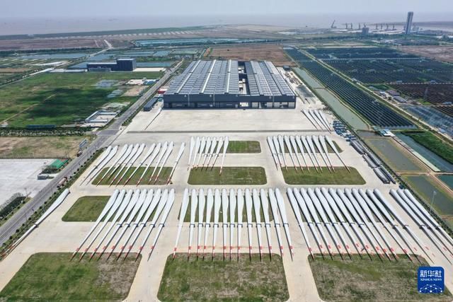 6月6日拍摄的位于射阳港低(零)碳产业园的射阳中车风电叶片工程有限公司的外景照片(无人机照片)。新华社记者 杨磊 摄