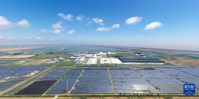 6月6日在射阳港低(零)碳产业园拍摄的长廊顶部太阳能光伏系统(无人机照片)。新华社记者 杨磊 摄
