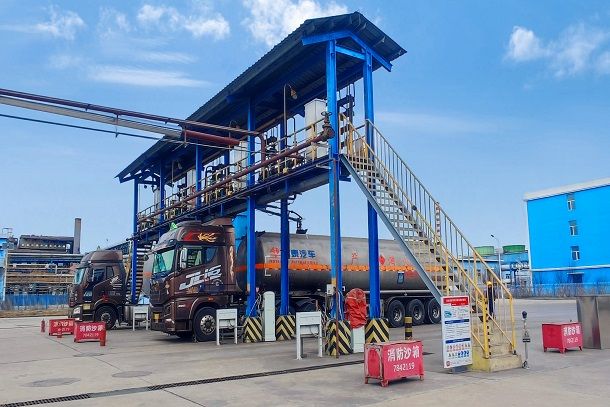 图为巴彦淖尔甲醇厂正在灌装精甲醇