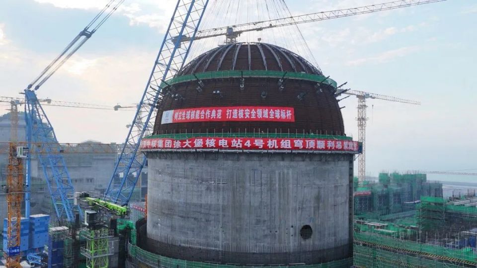 徐大堡核电3、4号机组于2021年5月19日在习近平总书记视频见证下开工建设。三年来,在中核集团党组和中国核电党委的坚强领导下,辽宁核电深入贯彻落实习近平总书记重要讲话精神,强化“整体·协同”,一系列里程碑节点目标逐一实现。本次4号机组穹顶顺利吊装就位,是中核集团以实际行动不断将习近平总书记关于项目“树立全球核能合作典范”“打造核安全领域全球标杆”的殷切嘱托变为现实的生动实践,也是积极贯彻落实习近平总书记关于东北、辽宁振兴发展重要讲话和指示批示精神的具体写照,为打好打赢新时代“辽沈战役”、助力东北全面振兴,为国家积极安全有序发展核电、建设新型能源体系注入了强劲动能。