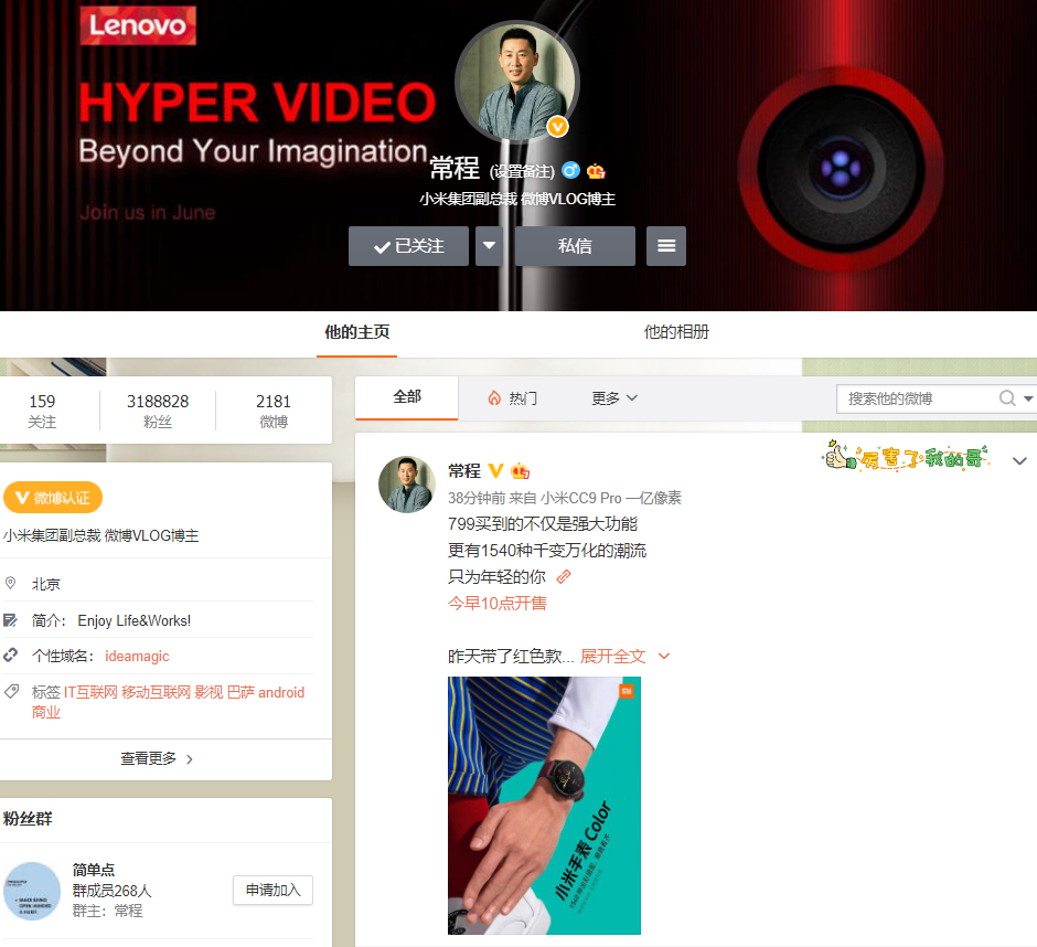 炣燃科技1月3日讯 (江丞华)1月3日,前联想集团副总裁、现小米集团副总裁常程已经开始在其个人官微上宣传起了新东家的产品。