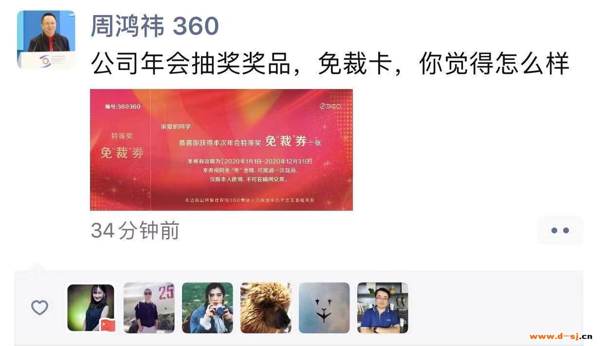 炣燃科技1月9日讯(江丞华) 1月8日,360集团在回应“董事长周鸿祎称年会将设置免裁券”一事时明确表示,没有裁员计划,是幽默。