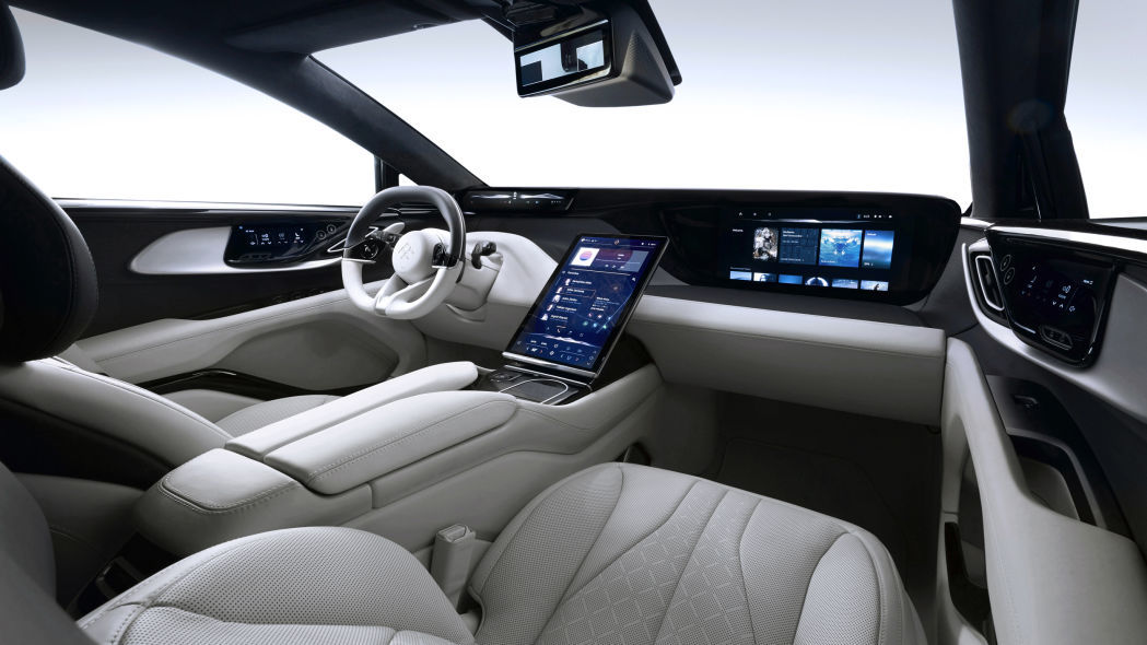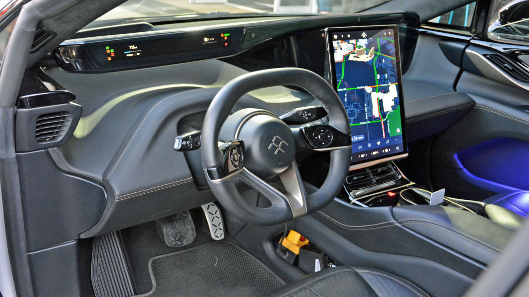 相比特斯拉等电动车,FF91更注重车内驾驶、乘坐和娱乐体验。其设计理念是“让每一个座位都是最好的座位”。据介绍FF91全车配备了11块显示屏,其中最有特色的是后排和副驾驶座位前的超大显示屏,可提供娱乐体验。