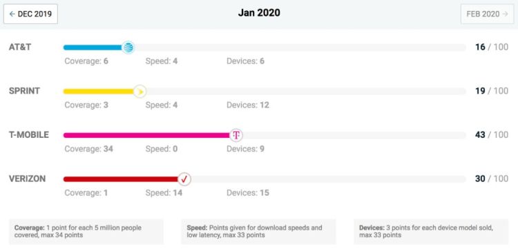 T-Mobile更是遭到了嘲笑,其目前在5G网络上的平均下载速度为61.25兆,这使得T-Mobile成为最慢的5G运营商,并且比全球许多4G网络都要慢。