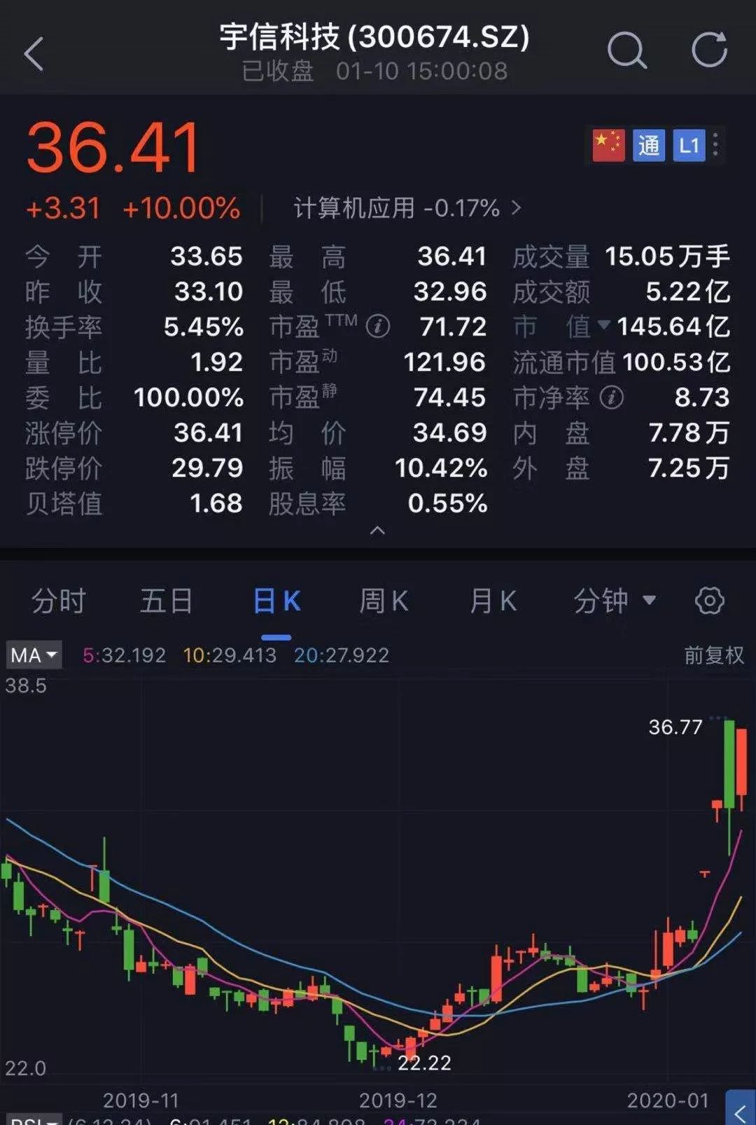 受此消息影响,宇信科技1月7日到今日收盘,四天三涨停,涨幅超30%。