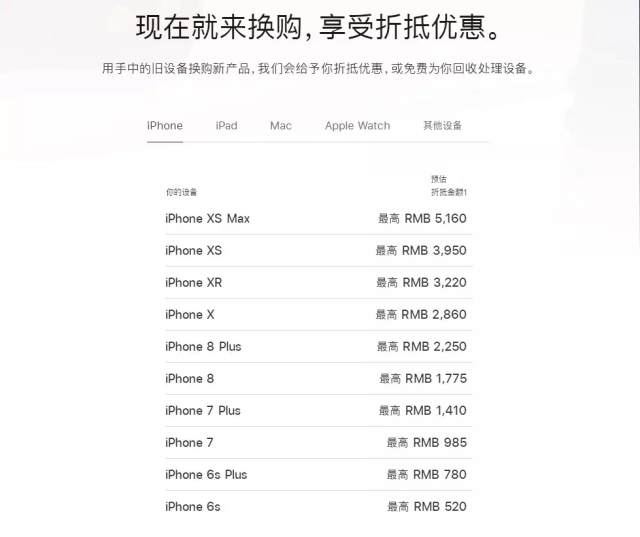 去年9月末,iPhone 11系列正式上市,随即苹果官网推出了以旧换新的换购优惠,涉及机型包括iPhone XS/XR系列、iPhone X、iPhone 8系列、iPhone 7系列以及iPhone6系列,其中iPhone XS Max 512GB版本最高可折抵5160元,让很多网友大呼良心。