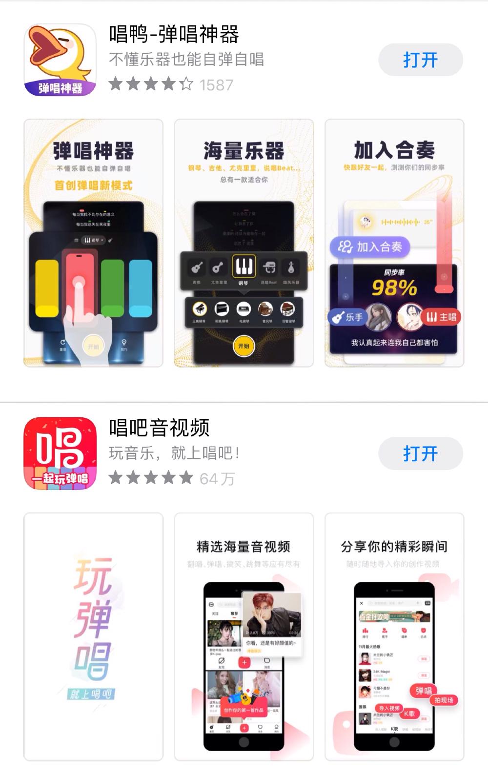 记者亲自体验发现,唱吧即将发布的弹唱功能对比唱鸭产品,两者不仅在页面设计、玩法功能上相似度非常高,而在此次上线的最新版本中,唱吧也抛出了“玩音乐”的概念。