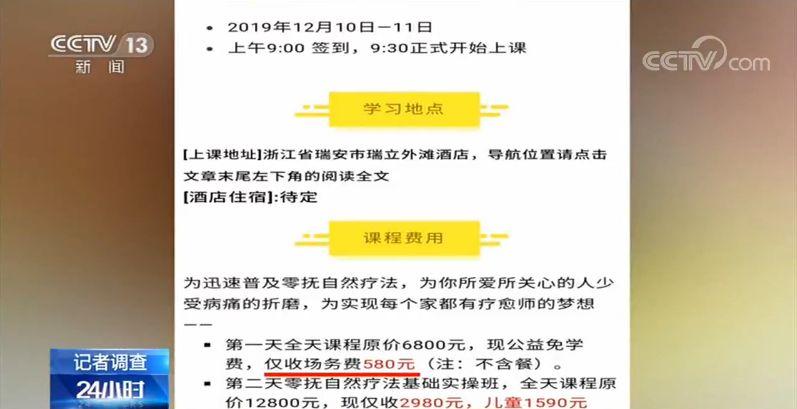 浙江温州 瑞安市市场监督管理局东山所副所长 方剑飞:这个案件现在已经基本的查实了。当事人就是组织活动的,主办者戴某某,发布了虚假的信息招收学员,收取了参加学习的人的学费6960元,但她培训的课程中宣传的信息,没有任何的科学依据或者医学的验证。其行为涉嫌诈骗,目前该案件已经移送公安机关,进行后续的查处。