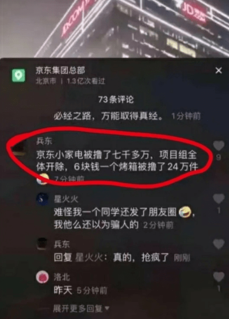 据之前网传的消息,京东在近日推出一个优惠活动,原先需要满千元才能使用的200元满减优惠券被项目组设置成无门槛,导致羊毛党疯狂下单。消息说,大量200元左右的小家电被一扫而空,其中仅一款烤箱就被下单24万次,到手价仅6元,京东一夜之间被撸实际商品总额达到7000万元。