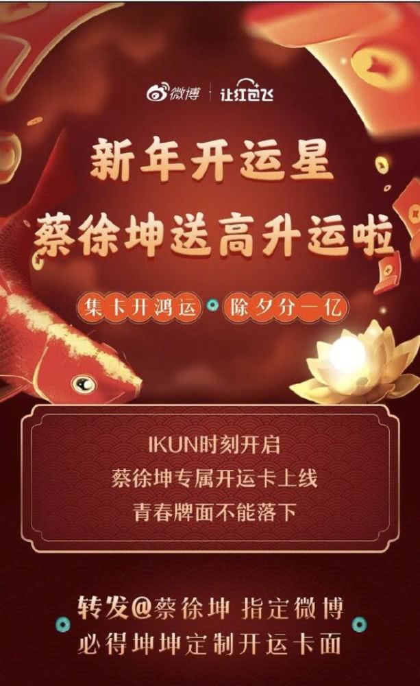 从除夕开始活动进入第二阶段,1月24日-2月8日期间,明星、大V、企业每日发布锦鲤微博,转发即可参与抽奖,有机会获得福气锦鲤(百份千元红包)、游戏锦鲤(稀有装备1人独享)、转运锦鲤(金锦鲤转运珠)、国潮锦鲤(数十万国潮礼包独宠1人)等等。