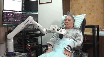 由于脑机接口技术同时依赖患者脑电信号特征及机器算法设计,目前尚无统一的信号采集、解码等分析手段,且老年患者的脑电信号质量与稳定性都要差些,研究团队为此设计了个性化的非线性解码器,并通过四个多月的反馈式学习,使该患者能操控机械手臂进行饮水、进食、握手等动作。