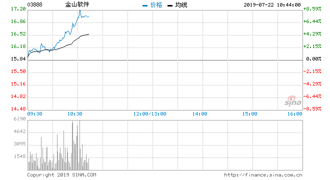 新浪港股讯 7月22日消息,旗下金山办公完成科创板问询,金山软件大涨7.45%,报17.02港元。