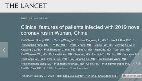 在柳叶刀的研究中,研究人员分析了2019年12月16日至2020年1月2日期间在武汉市入院的首批41例确诊感染2019-nCoV 的病例。