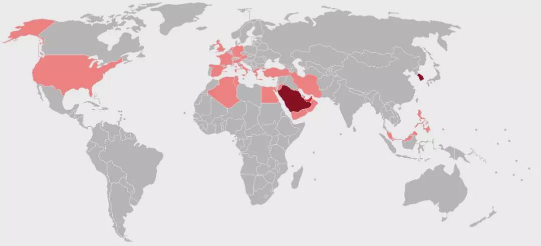 图丨中东呼吸综合征的感染范围(来源:Wikipedia)