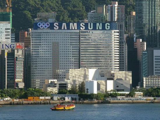 三星广告悬挂在香港维多利亚港,摄于2008年。/Baycrest