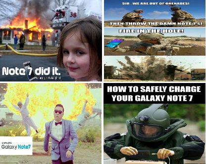 各地网友和媒体纷纷报告,Note 7在正常使用状态甚至待机状态下自燃自爆,无论这些消息是真是假,都是互联网meme文化的绝佳素材,三星的竞争对手的公关部门更不会放过如此天赐良机。