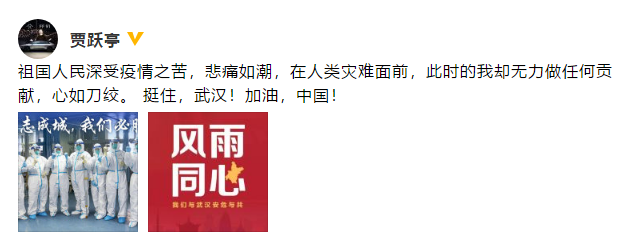“在人类灾难面前,此时的我却无力做任何贡献,心如刀绞。挺住,武汉!加油,中国!”贾跃亭说。