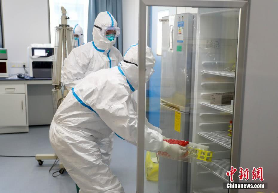 2月4日,武汉市疾控中心检测组工作人员进行病毒检测。武汉市疾控中心是该市首批获准开展新型冠状病毒核酸检测的机构之一。位于该中心病原生物检验所的生物安全二级实验室(P2实验室)则是“绝对禁区”。中新社记者 张畅 摄