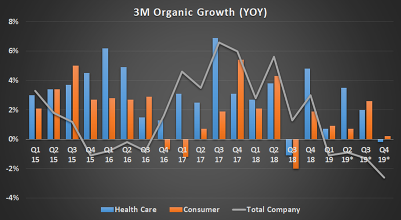 过去五年中,有三年的增长低于管理层最初的预期,削弱了投资者对3M的信心。其消费品和医疗健康领域也一直未能达到期望。