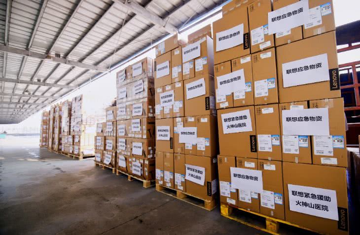 同样这一天,国内另一家 IT 企业联想集团为火神山医院捐赠的 IT 设备(含首批测试设备)也已准备完毕,等待装车送往工地。