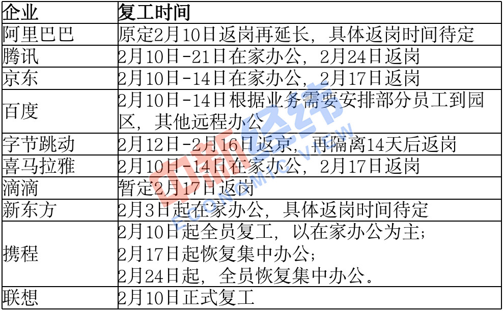 不过,仍有大量的行业、企业没有复工。中新经纬记者询问了几家公司的开工情况,不少互联网公司已经开始在家办公,返岗时间有的推迟、有的待定。