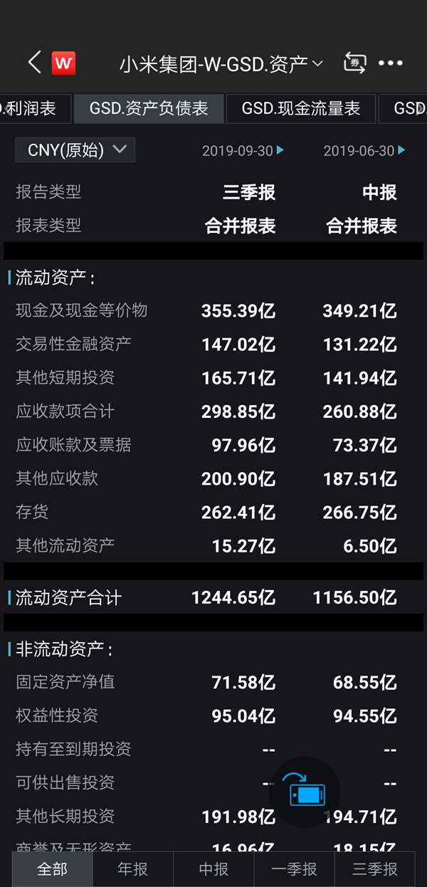 在现金储备方面,截至2019年三季度,小米集团的现金及现金等价物为355.39亿元人民币,流动资产高达1244.65亿元。