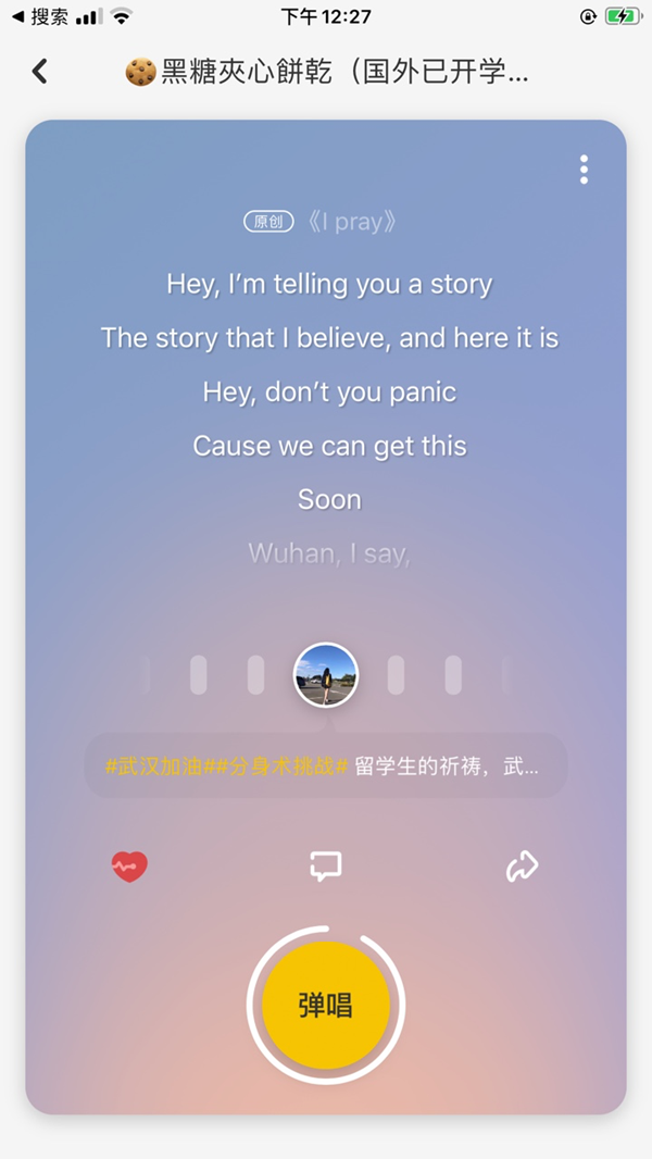 炣燃科技2月14日讯 在新型冠状病毒疫情发生后,林俊杰、张亚东、胡海泉等知名音乐人纷纷献“声”武汉,用一首首原创音乐给一线的白衣战士们打气。近日,一位名叫饼干的16岁留学生也创作了一首公益歌曲《I Pray》“声”援武汉。歌曲发布后不仅得到了留学生们的积极响应,也收获了大量来自国内网友的点赞和评论。对于此时很多在家中学习的学生来说,一首深情的短音乐成为了年轻人彼此交流的社交语言和情感树洞。