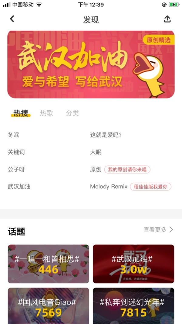 作为一款音乐社区产品,唱鸭中聚集了大量喜欢唱歌、喜欢音乐的年轻人,以95后、00后为主。用户创作出了《逆行》、《武汉不孤单》等百余首祝福武汉的原创短歌曲。截至目前,共有3万首歌曲参与到“武汉加油”话题中。