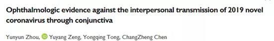 陈长征研究组就此提出,新冠肺炎患者结膜炎的发生率不高,临床数据不支持新冠病毒可通过结膜途径传播。