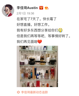 李佳琦在疫情期间放缓了自己的直播频率。从1月24日正月初一至今,李佳琦只在淘宝开了4场直播。而在此之前,一天365天,李佳琦能直播389场。