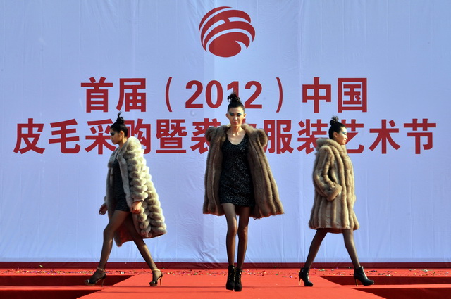 中国是全球最大的毛皮产品加工制造国。图为某毛皮服装节上的模特走秀。摄影/章轲