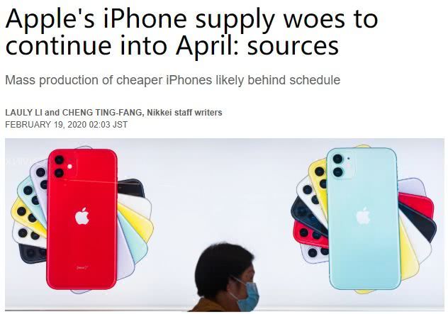 2月18日,苹果曾警告称,疫情将导致公司本季度的营收不及预期。这也是在一年多一点的时间里,中国市场需求不足导致苹果第二次发布财务警报。苹果表示,公司原本认为在2月10日结束的春节假期过后,中国的产业链工厂都将复工。然而,苹果称“复工的速度要比我们预期的要慢”,这也是公司表示本季度无法达到上月发布的营收指引的主要原因。